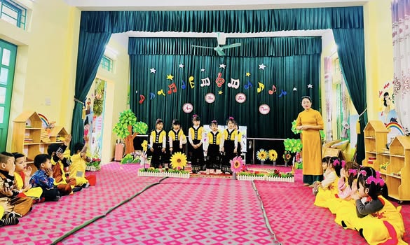 phong phú như hát, vận động theo nhạc, sử dụng nhạc cụ đa dạng đã tạo nên không gian học tập đầy hứng khởi và bổ ích.