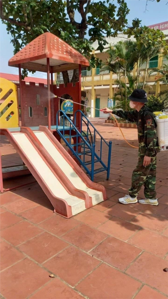 Với trẻ mầm non tất cả những gì xung quanh đều mới lạ, hấp dẫn trẻ, kích thích sự tò mò, khám phá của trẻ. Trẻ tích cực hoạt động với các đồ dùng đồ chơi ở trường lớp mầm non. Song trẻ chưa ý thức được việc vệ sinh cá nhân, việc phòng chống dịch bệnh. Bên cạnh đó, cơ thể trẻ còn non nớt, sức đề kháng còn yếu. Môi trường học tập, vui chơi của trẻ thường tập trung nhiều trẻ khác. Tất cả những yếu tố trên rất dễ dẫn đến trẻ em mắc phải dịch bệnh. Chính vì vậy, người lớn cần phải có hiểu biết về tầm quan trọng của việc làm tốt công tác phòng chống dịch bệnh cho trẻ và hình thành ở trẻ những thói quen giữ gìn vệ sinh cá nhân, ý thức phòng chống dịch bệnh cho trẻ. Vì vậy làm thế nào, để phòng chống dịch bệnh xảy ra với trẻ trong trường mầm non. Điều này là một vấn đề cần được ban giám hiệu nhà trường, giáo viên, phụ huynh quan tâm và tìm các biện pháp giải quyết để ngăn chặn kịp thời khi dịch bệnh xảy ra. Nhận thức được việc phòng chống dịch bệnh cho trẻ là việc làm quan trọng, cần thiết và là vấn đề cấp bách trong thời điểm hiện nay. Và một trong những biện pháp đó là vệ sinh môi trường và khử khuẩn đồ dùng đồ chơi trong và ngoài lớp. Tất cả các phòng nhóm từ phòng sinh hoạt chung đến nhà kho, phòng bếp, nhà vệ sinh đều được phun khử khuẩn. Vệ sinh môi trường chính là cách diệt trừ viruts gây bệnh nhanh nhất